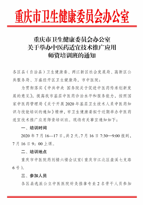 关于举办中医适宜技术(赵氏雷火灸)推广应用师资培训班
