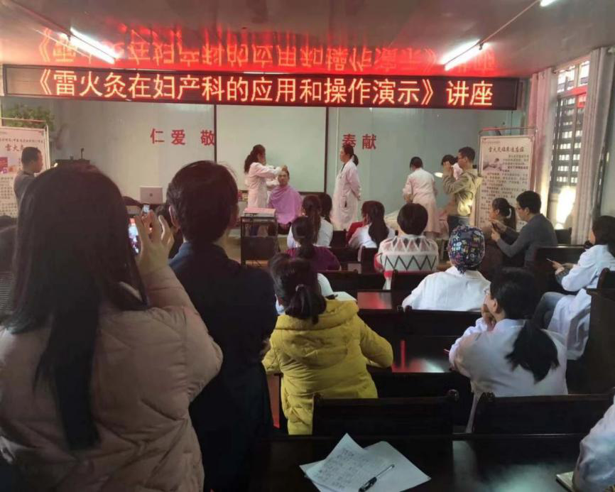 为了让医务人员更加深刻地认识雷火灸,于都县妇保院举办了《雷火灸在妇产科的应用和操作演示》讲座,雷火灸协作组专家宋锦萍进行理论介绍,并现场生动地演示雷火灸技术操作,医务人员现场观摩学习。