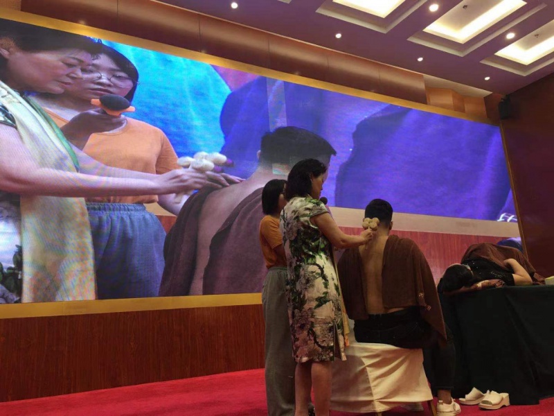 揭牌仪式结束后,张丽所长进行现场教学,介绍了赵氏雷火灸并现场操作治疗了干眼症、颈椎、减肥等系列病症,效果立竿见影,得到了大家一直的认可,特别是现场腹部减肥,效果明显。