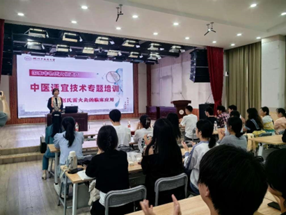 国家级非物质文化遗产-赵氏雷火灸的第五代技术传承人张丽进入湖北省中医药大学,为广大师生教授雷火灸技术并现场演示不同病种应用,让师生们更加知道祖国传统中医药的瑰力及有效性。